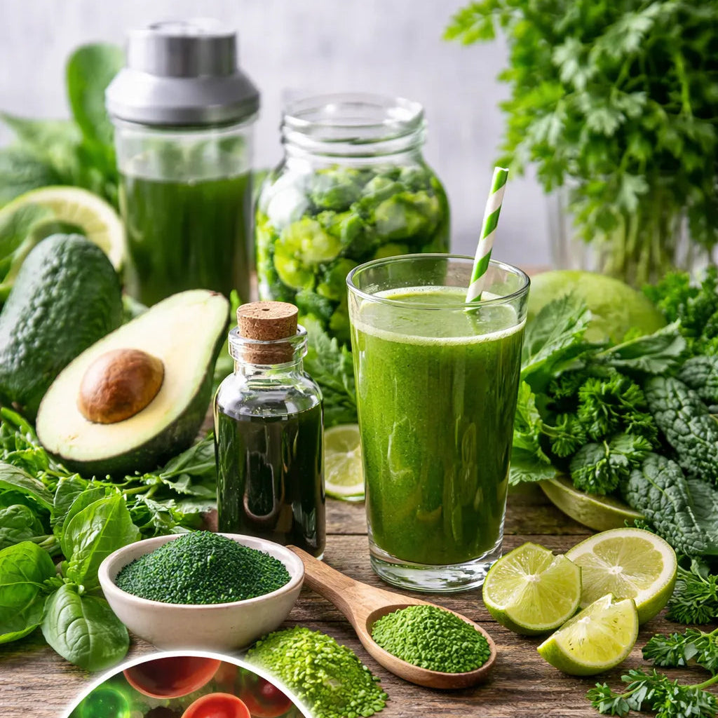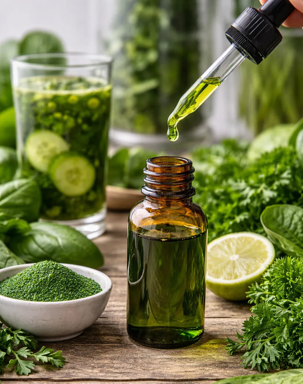 La última moda en las redes sociales: la clorofila líquida. Al parecer unas gotas de clorofila líquida mezcladas con agua todos los días garantizan una piel radiante y pura. Pero, ¿qué hay realmente detrás de esto? ¿Y qué efecto tienen realmente estas gotas? Examinamos esta tendencia de cerca.